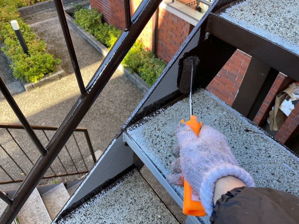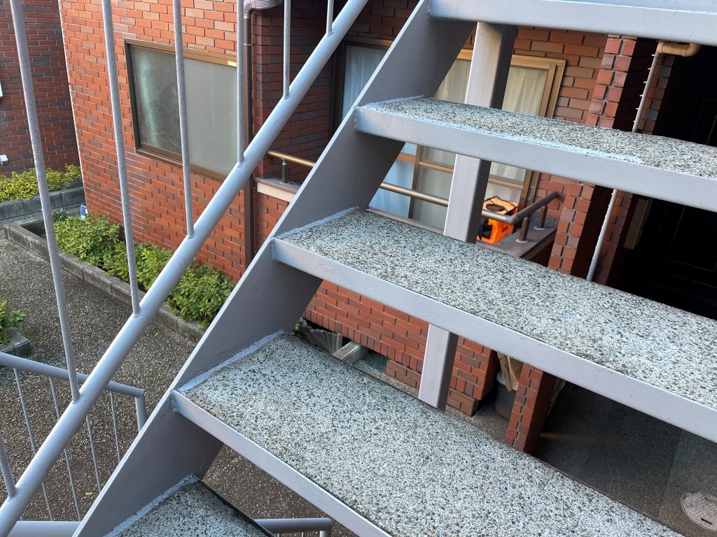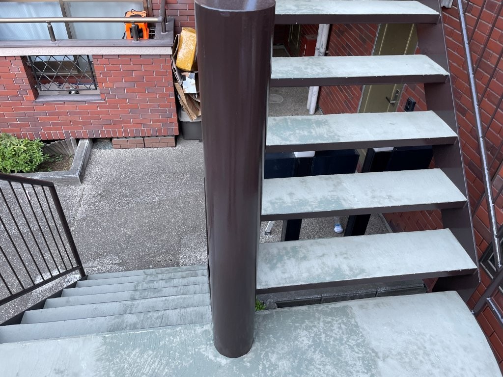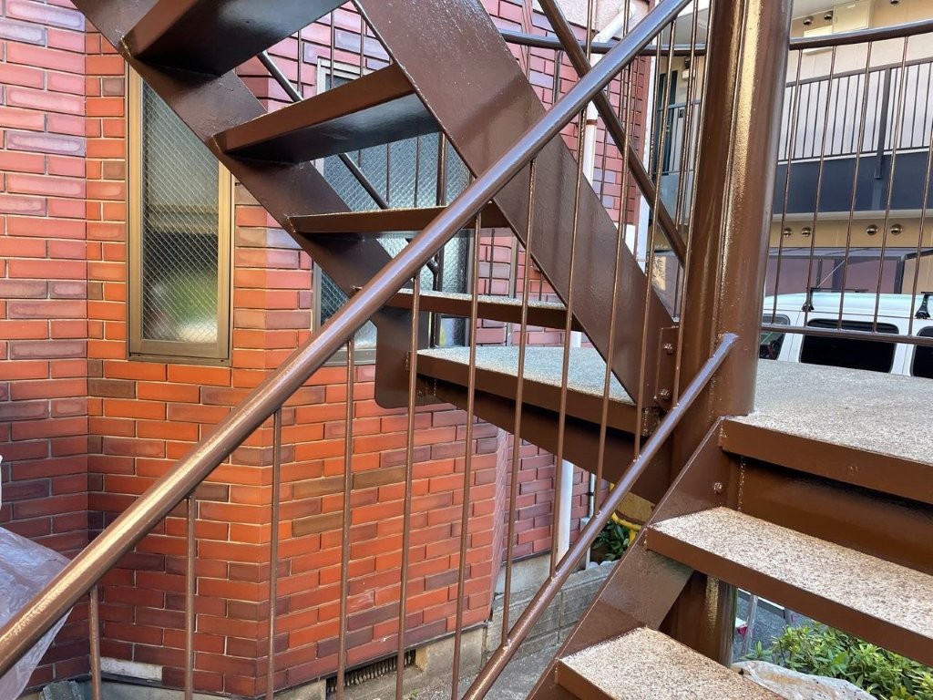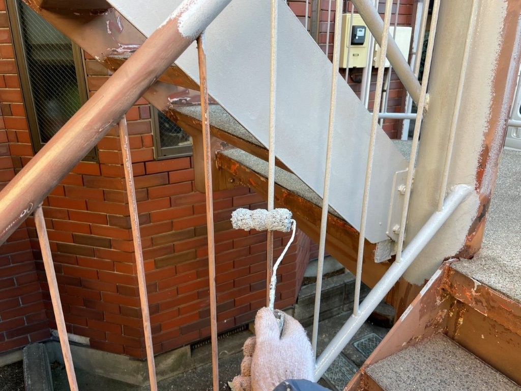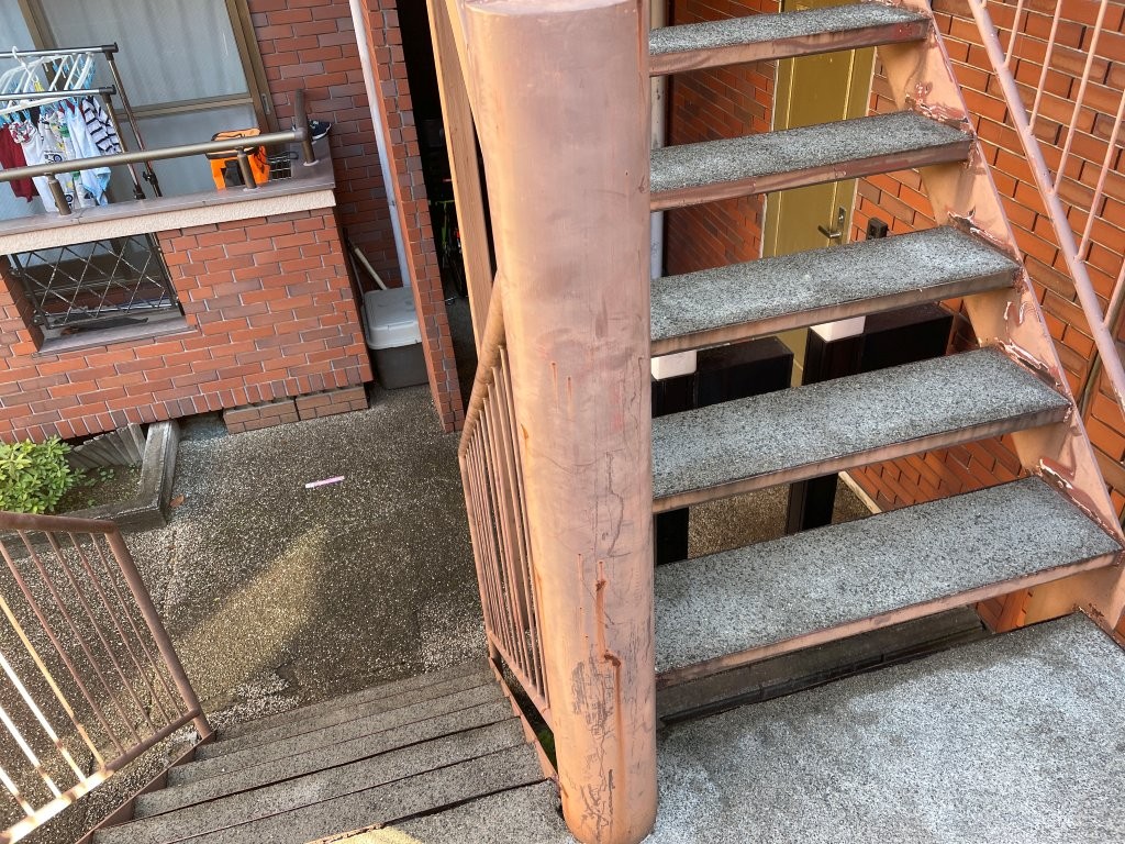 アパート外階段(鉄骨階段)の塗装工事|東京都葛飾区立石の賃貸物件にて塗装メンテナンス