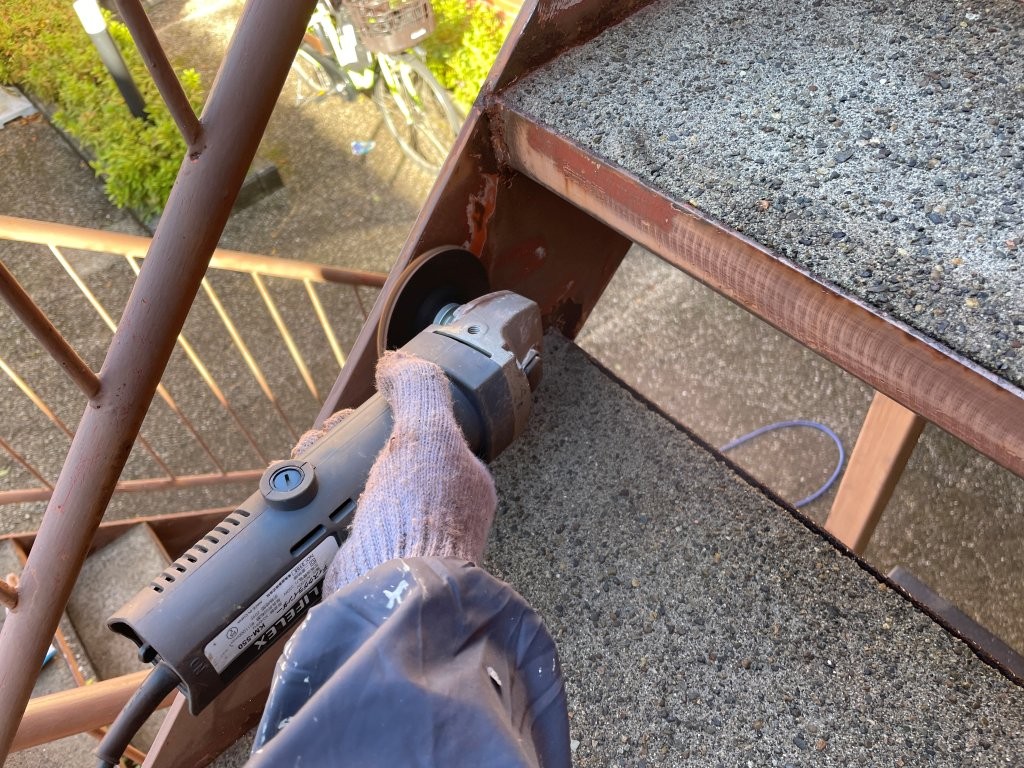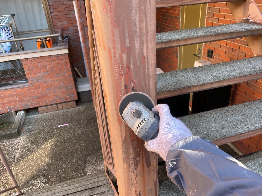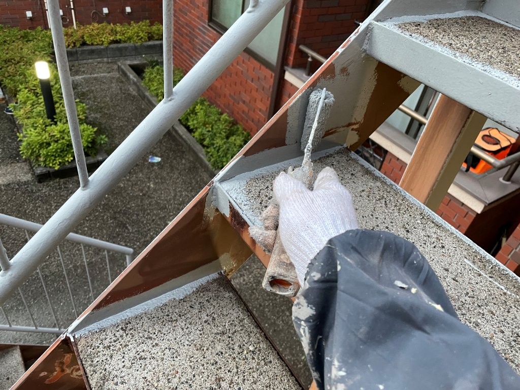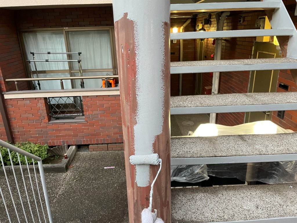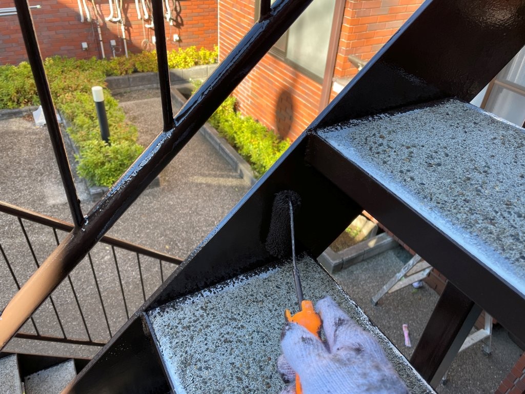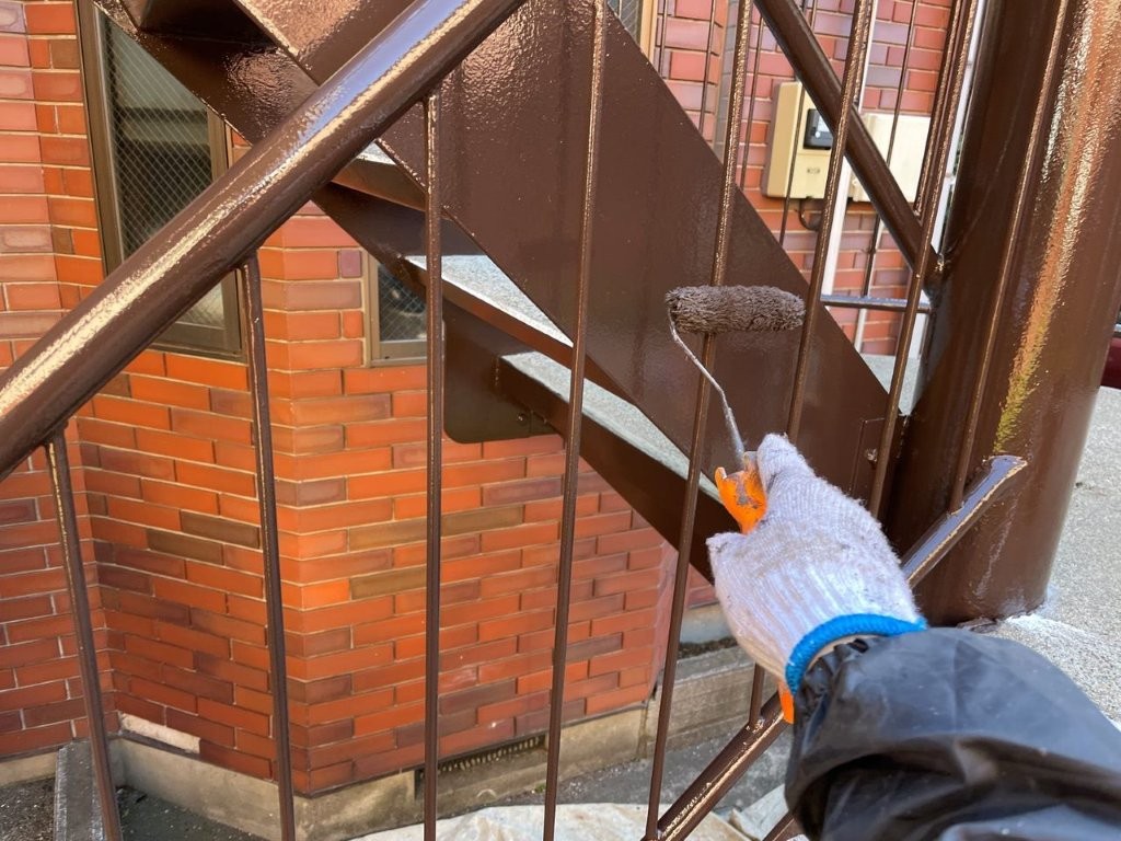 アパート外階段(鉄骨階段)の塗装工事|東京都葛飾区立石の賃貸物件にて塗装メンテナンス