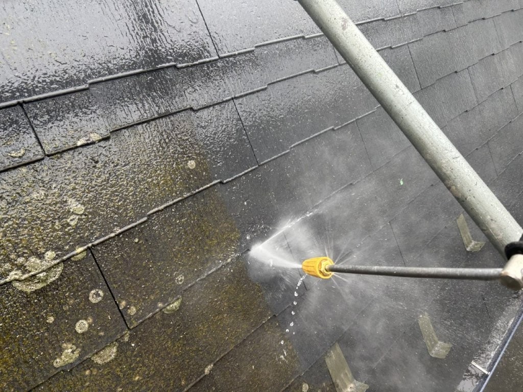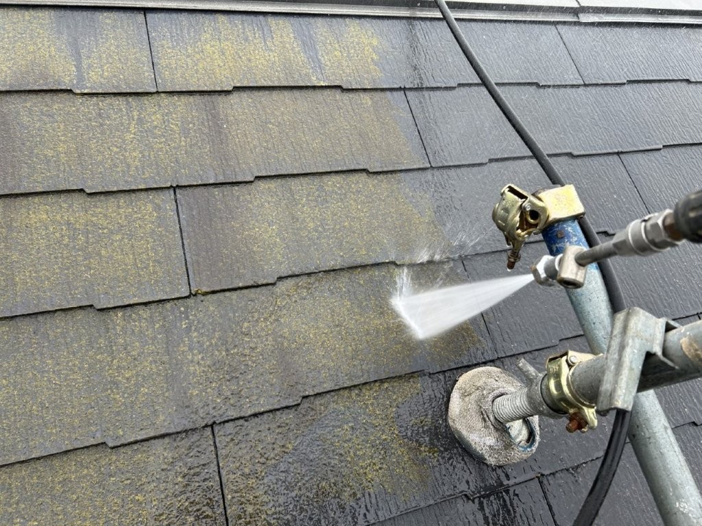 ▶屋根の洗浄:苔・汚れを除去(葺き替え前の下準備)