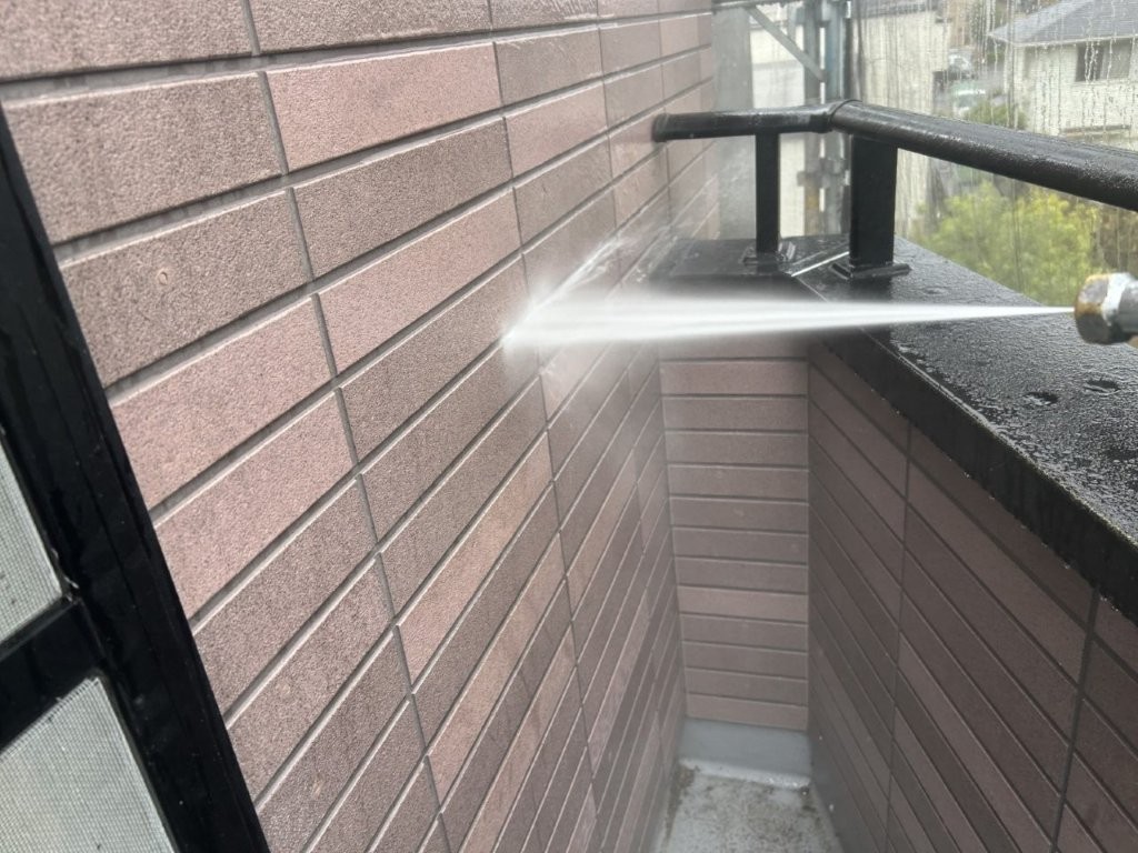 ① 高圧洗浄|外壁・ベランダ・付帯部の汚れを徹底除去