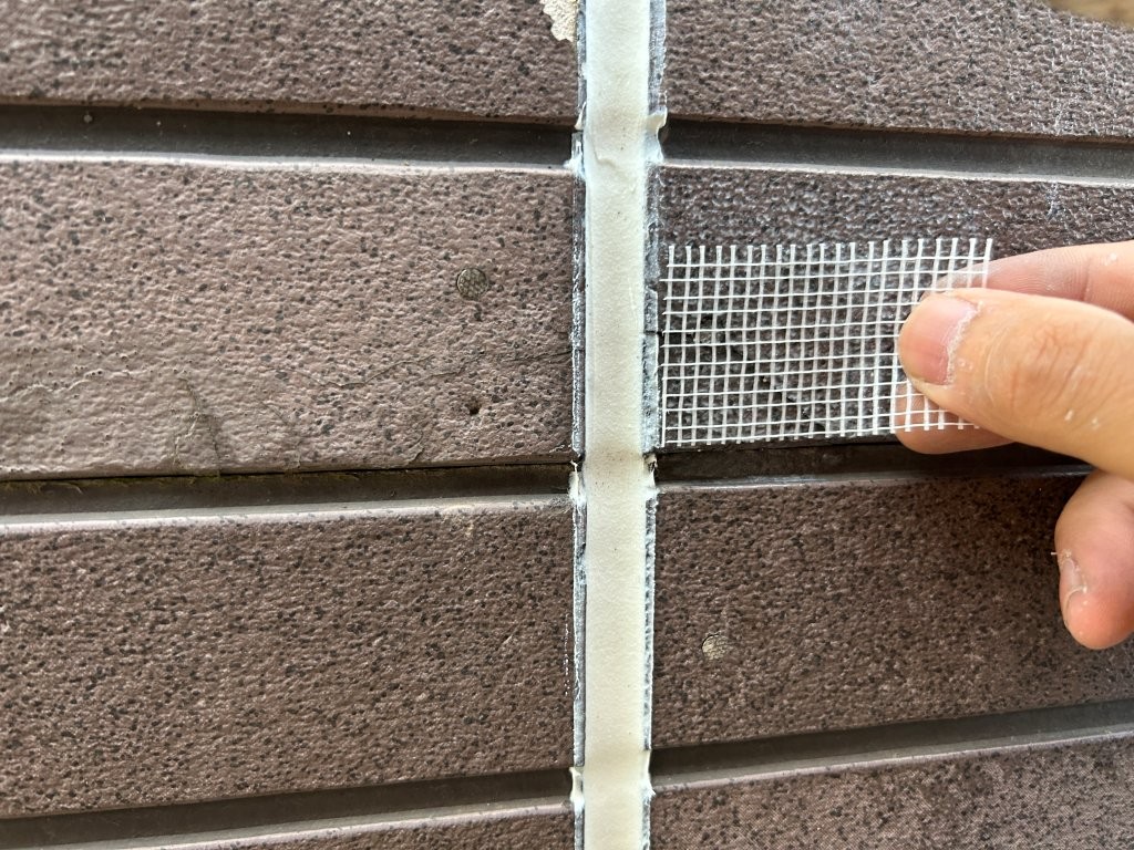 ③ 外壁ひび割れ補修|Vカット+ファイバーテープで強化補修