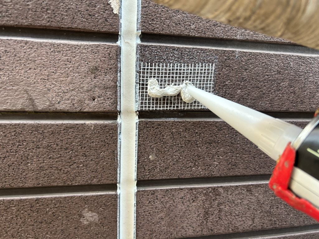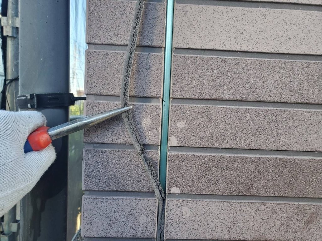 外壁目地の既存シーリングをすべて撤去し、新しいシーリング材で完全に打ち替え。