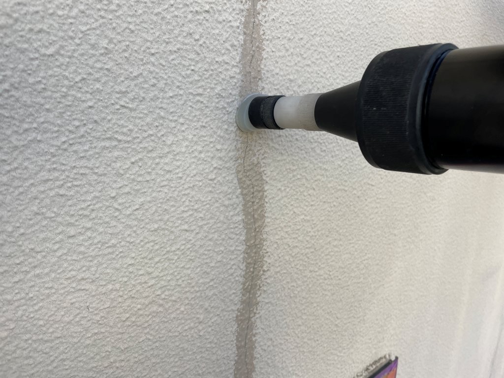 既存シーリングを撤去し、新規充填を行いました。