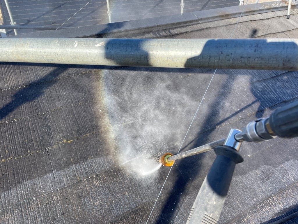 特にスレート屋根は劣化粉が出やすく、ここを確実に落とすことで塗料の密着性が大きく向上します。