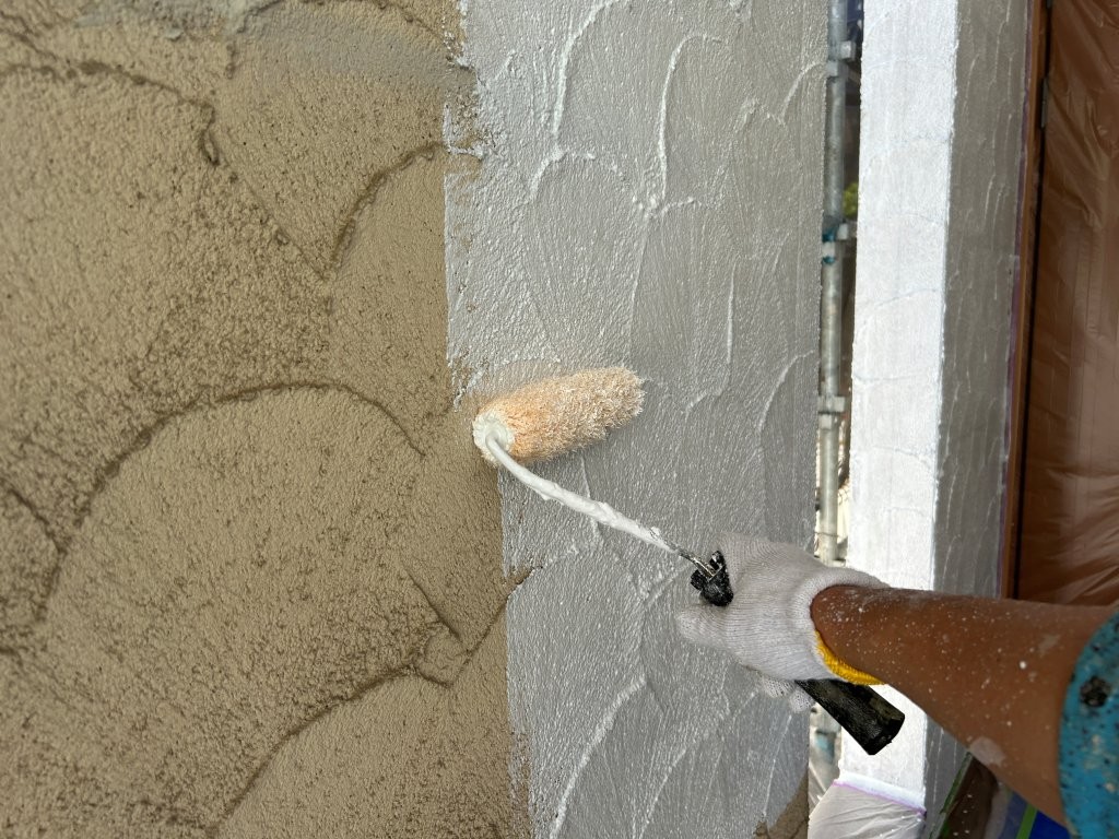 密着性を高めるため、下塗りで下地を均一化。吸い込みムラを抑え、上塗り性能を引き出します。