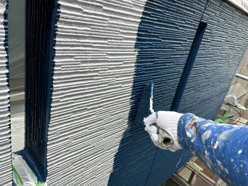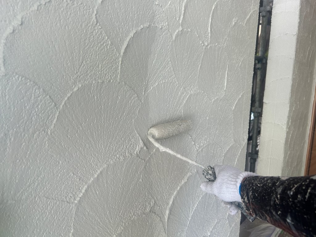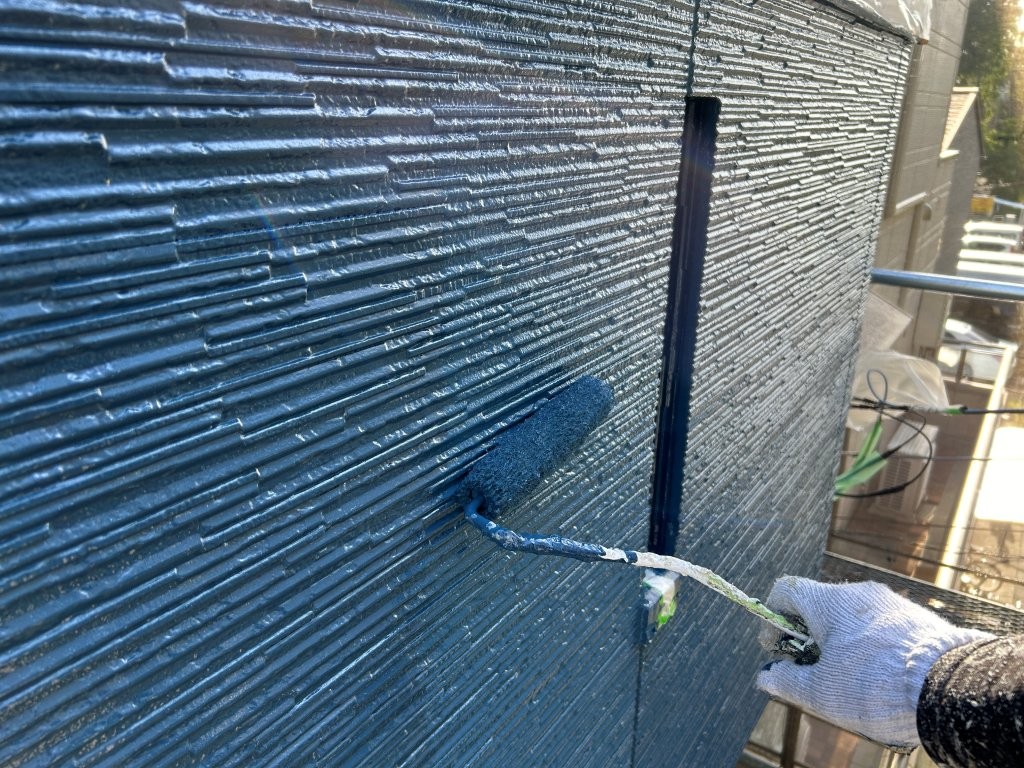 中塗りで塗膜厚を確保し、色ムラを抑制。細部までローラーで丁寧に塗り込みます。