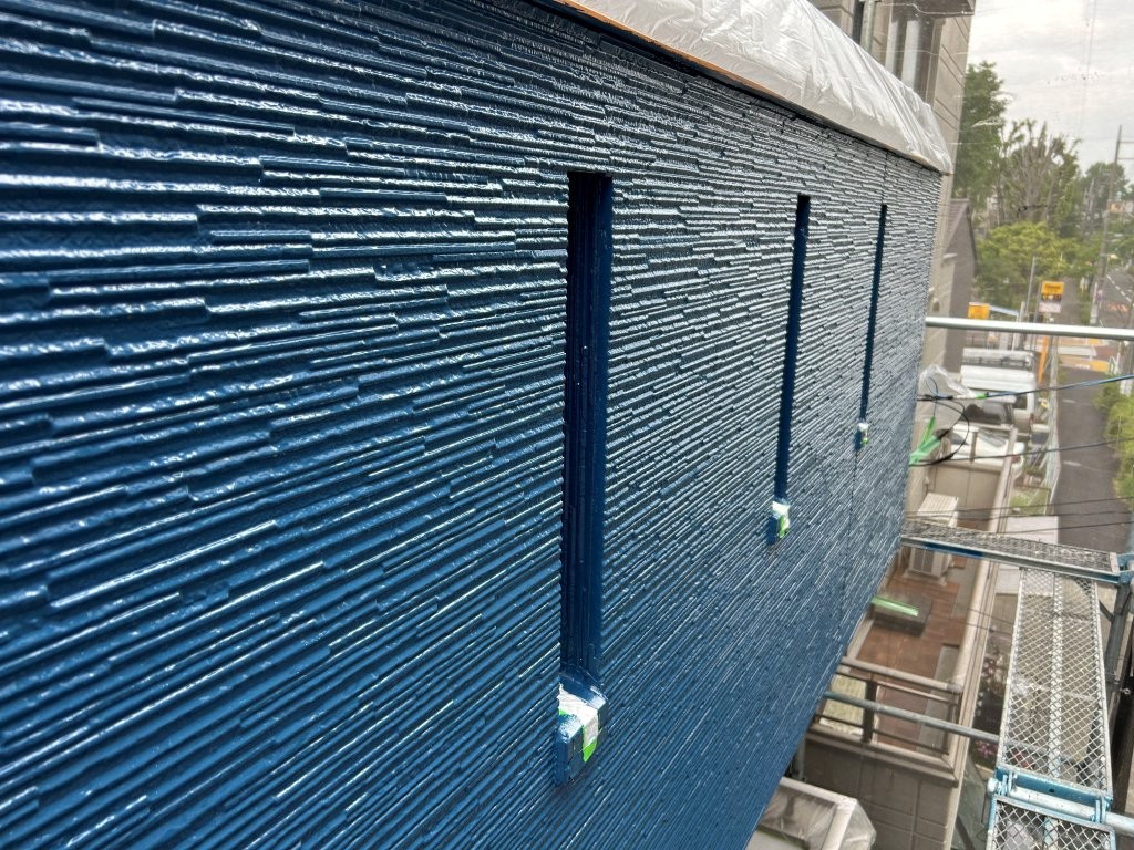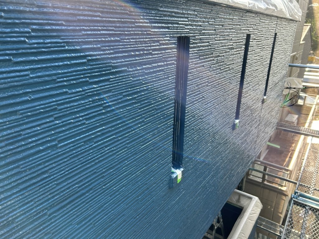外壁塗装|ブルーアクセント面(バルコニー強調)