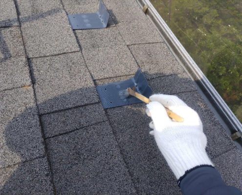 屋根の雪止めの塗装|葛飾区新小岩のH様邸にて塗り替えリフォーム中
