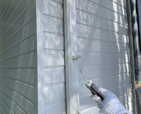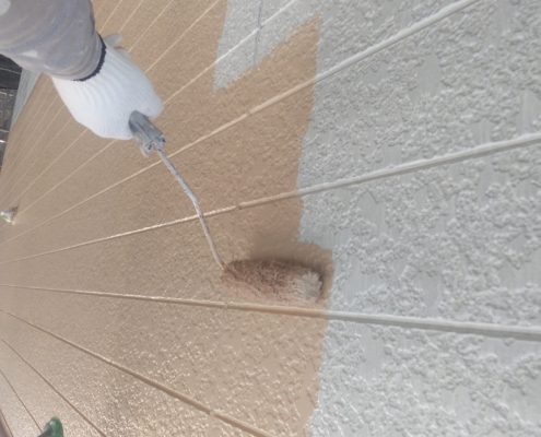外壁(モルタル・サイディング)の中塗り塗装|葛飾区水元のF様邸にて塗り替えリフォーム工事中