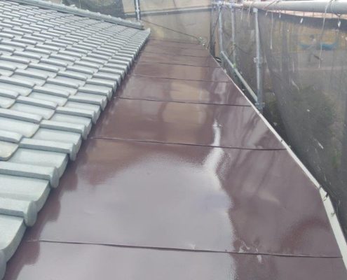 下屋根の塗装工事|葛飾区水元のF様邸にて塗り替えリフォーム工事中