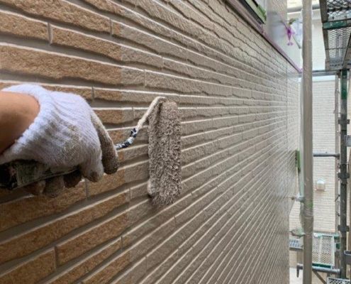 外壁の上塗り塗装|葛飾区鎌倉のE様邸にて外壁の塗り替え塗装中