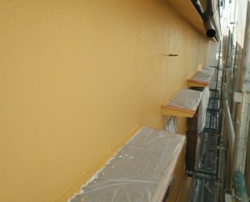 外壁の中塗り塗装(上塗り1回目)|葛飾区鎌倉のE様邸にて外壁の塗り替え塗装中