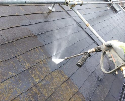 建物全体の高圧洗浄(水洗い)|葛飾区鎌倉のT様邸にて外壁の塗り替え塗装中
