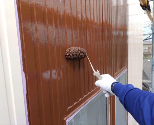 外壁サイディング(金属系・窯業系)の上塗り塗装|葛飾区鎌倉のT様邸にて外壁の塗り替え塗装中